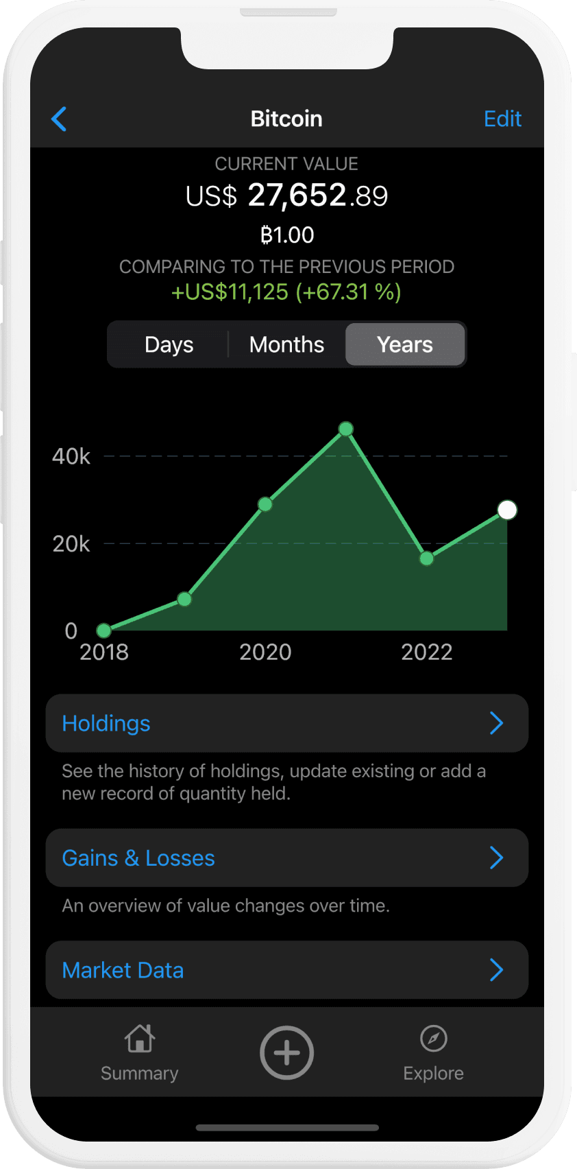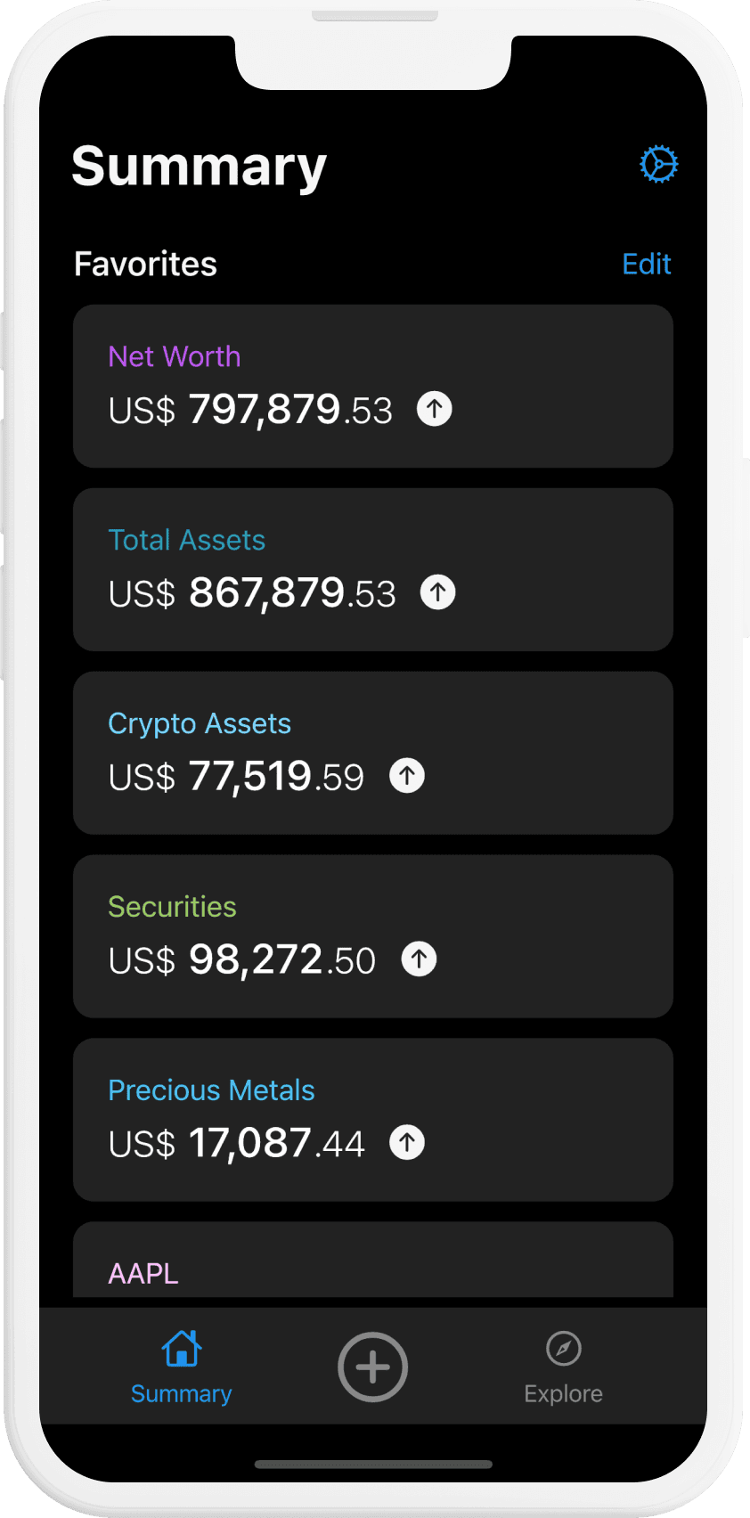 Stocks, ETFs, cryptocurrencies, precious metals, and equities from U.S. and global markets. With Sumio you can monitor all your investments.